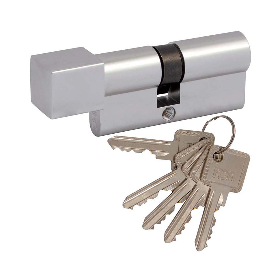 / Cylinder RDA 30/38mm english key 68mm 5 key square knob Leštený chróm