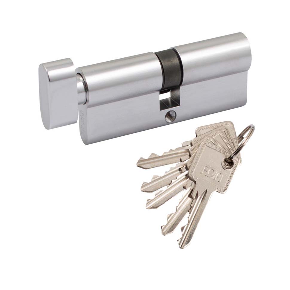 / Cylinder RDA 35/35mm english key 70mm 5 key square knob Leštený chróm