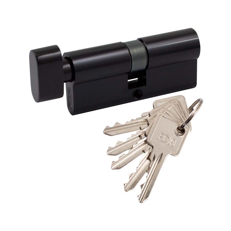 Cylinder RDA 40/40mm english key 80mm 5 key knob Čierna