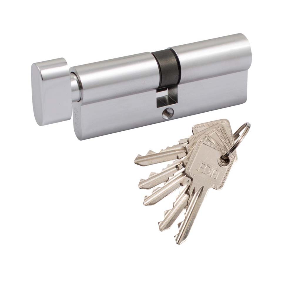 / Cylinder RDA 40/40mm english key 80mm 5 key knob Leštený chróm